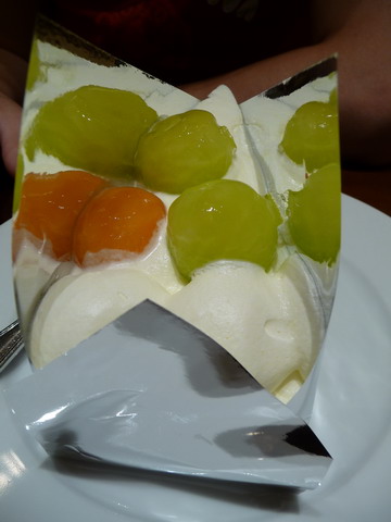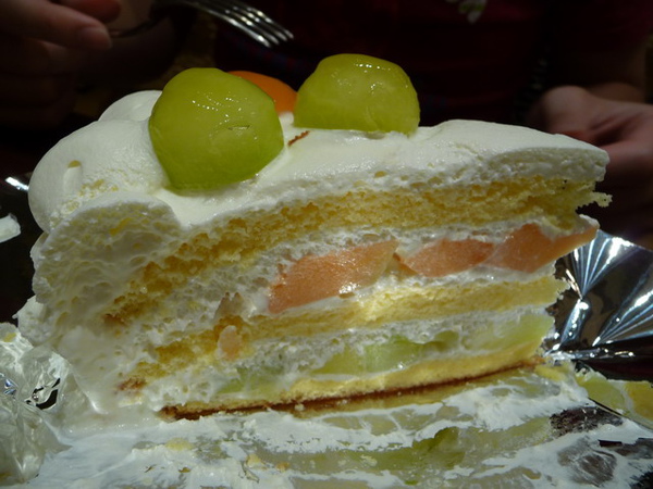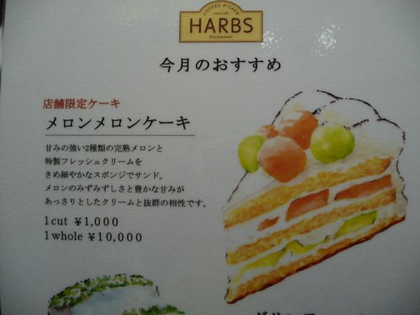 結合了紅色和綠色哈蜜瓜的蛋糕,一片要1000 YEN