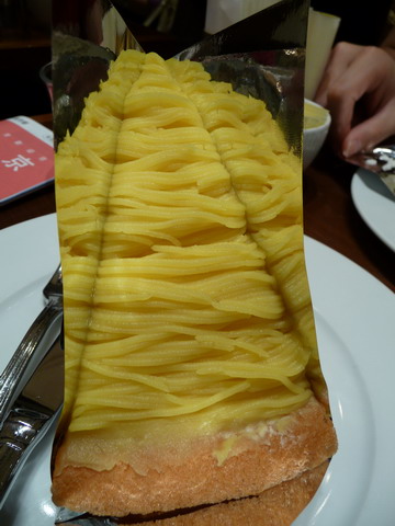 上面佈滿栗子泥,栗子泥不會太甜,但我覺得栗子味好像還不夠?!
