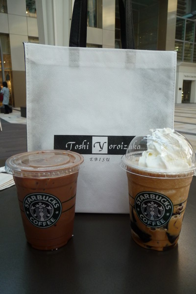 在星巴克的戶外座位享用,雖然都喝冰的,但是不會冷哦