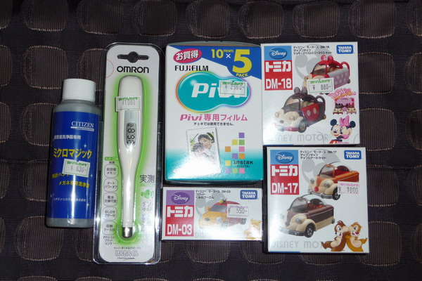 在YODOBASHI買了超音波洗淨器的葯水、體溫計、PIVI底片和米奇米小車