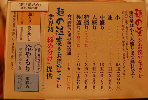首先是麵的份量,從最少的0.8玉,到最多的6玉都是不加價的(誰吃的下6玉啊,嚇死人)