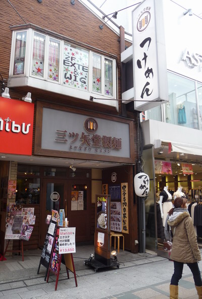 我們從本川越站出來往丸廣百貨的大扛棒走去,過了丸廣不久就會看到三ツ矢堂製麺了