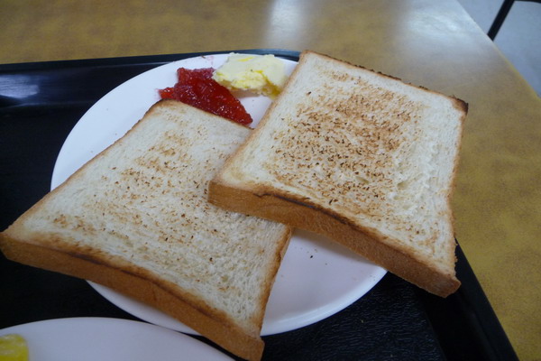 附二片烤吐司,也會給你奶油和草莓果醬…