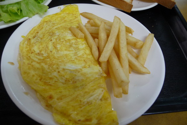 火腿起士杏利蛋(附薯條、吐司) 110元