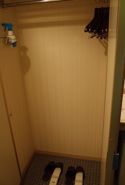 衣櫃打開,裡面附的拖鞋不是免洗式的