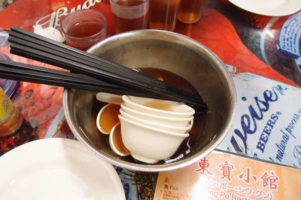 在香港用餐,最常看到用茶或熱水洗碗筷的動作,算是標準流程了~